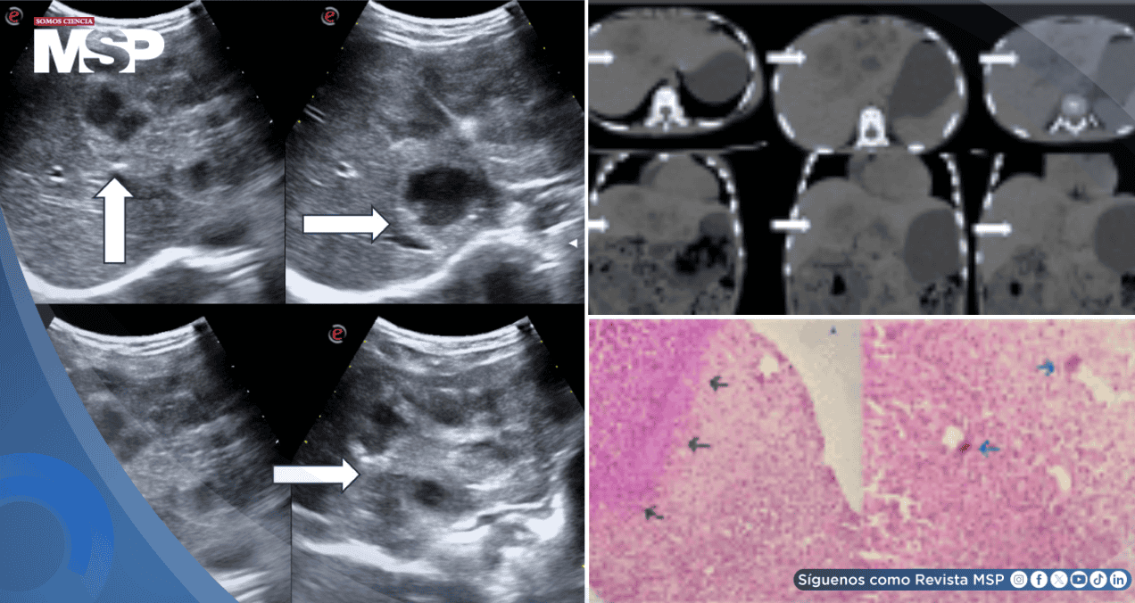 La ecografía y la tomografía abdominal detectaron lesiones hepáticas que imitaban otras enfermedades graves, pero la biopsia confirmó larva migratoria visceral hepática, una infección producida por la migración de larvas al hígado.