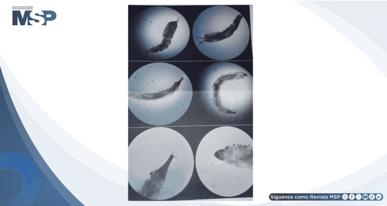 La exploración física evidenció eritema en labios mayores e ingle secundario al rascado persistente. El examen ginecológico reveló un cuadro alarmante: numerosas larvas ubicadas en meato uretral, labios menores y canal vaginal, extendiéndose hasta proximidades del cérvix, el cual permaneció intacto según colposcopia.
