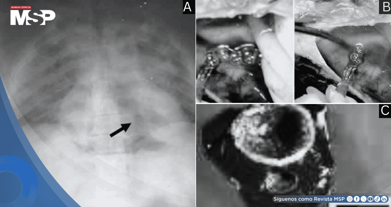 El mecanismo fisiopatológico involucra la imposibilidad de escape del gas desde una cavidad cerrada, facilitando su absorción masiva por el sistema venoso. El calor generado en la reacción exergónica probablemente contribuyó mediante vasodilatación local. El resultado fue la sobrecarga aguda del ventrículo derecho con gas, causando fallo cardíaco por obstrucción mecánica y bajo gasto.