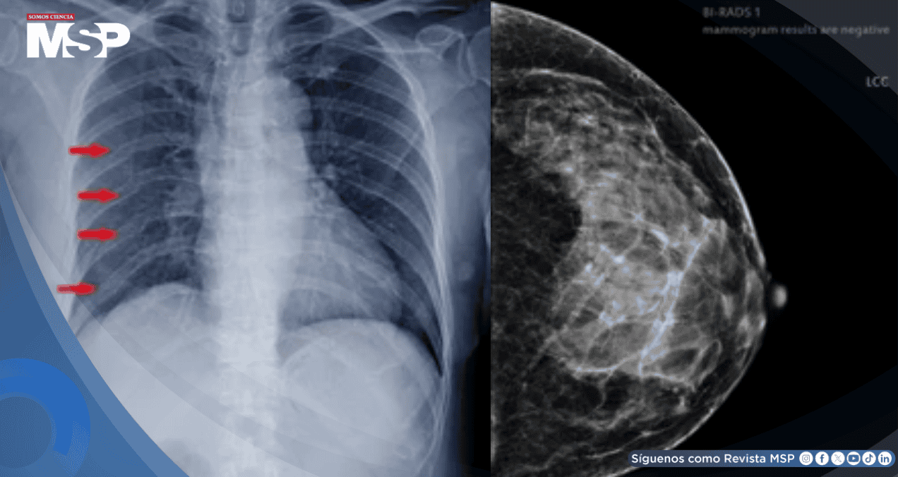 Dos años después de completar ese segundo tratamiento, la paciente comenzó a sufrir un dolor intenso y opresión en el pecho. Los estudios de imagen, como la tomografía computarizada, revelaron múltiples fracturas en las costillas del lado izquierdo.