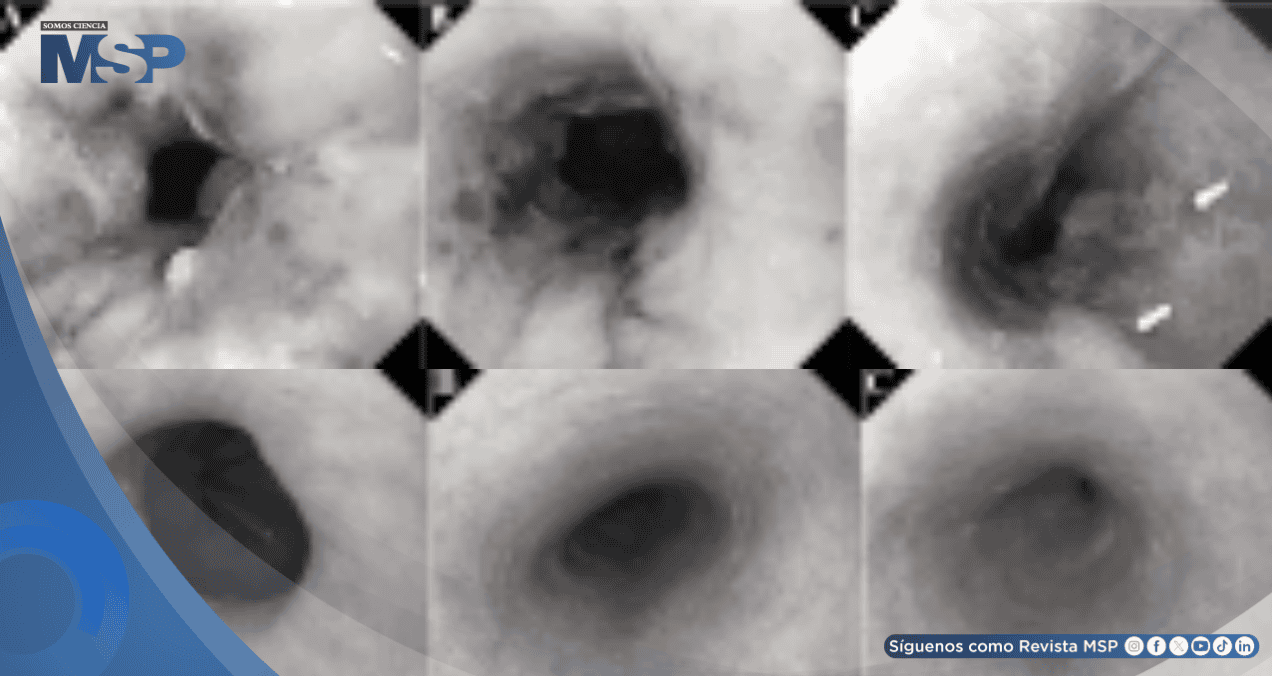 La endoscopia de control realizada un mes después confirmó la cicatrización completa de las lesiones ulceradas sin desarrollo de estenosis esofágica.