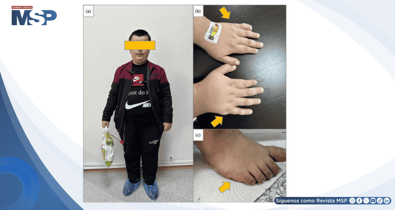 El paciente presentaba las manifestaciones características del síndrome: obesidad desde la infancia con un índice de masa corporal de 38 kg/m², deterioro visual secundario a retinopatía, hipogenitalismo, polidactilia previamente corregida y retraso leve del desarrollo con dificultades de aprendizaje.