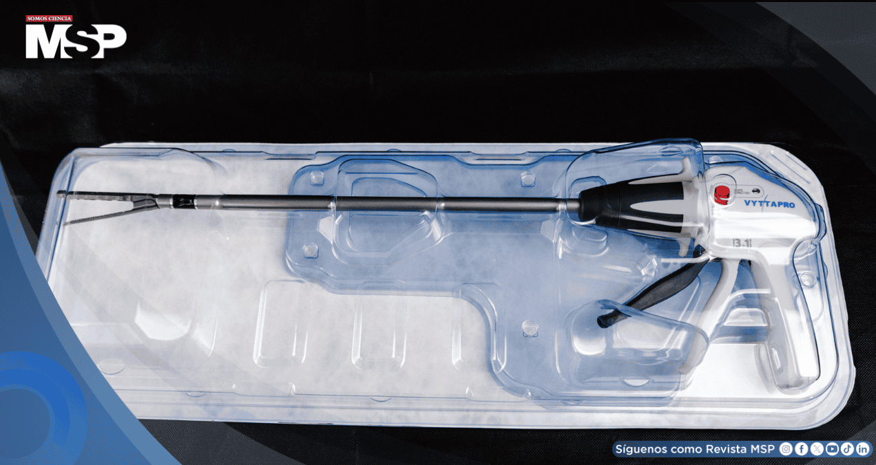 Entre las innovaciones presentadas destaca un nuevo instrumento para control de sangrado, diseñado con una hendidura especial que permite suturar vasos sanguíneos sin necesidad de retirar el clamp durante el proceso.
