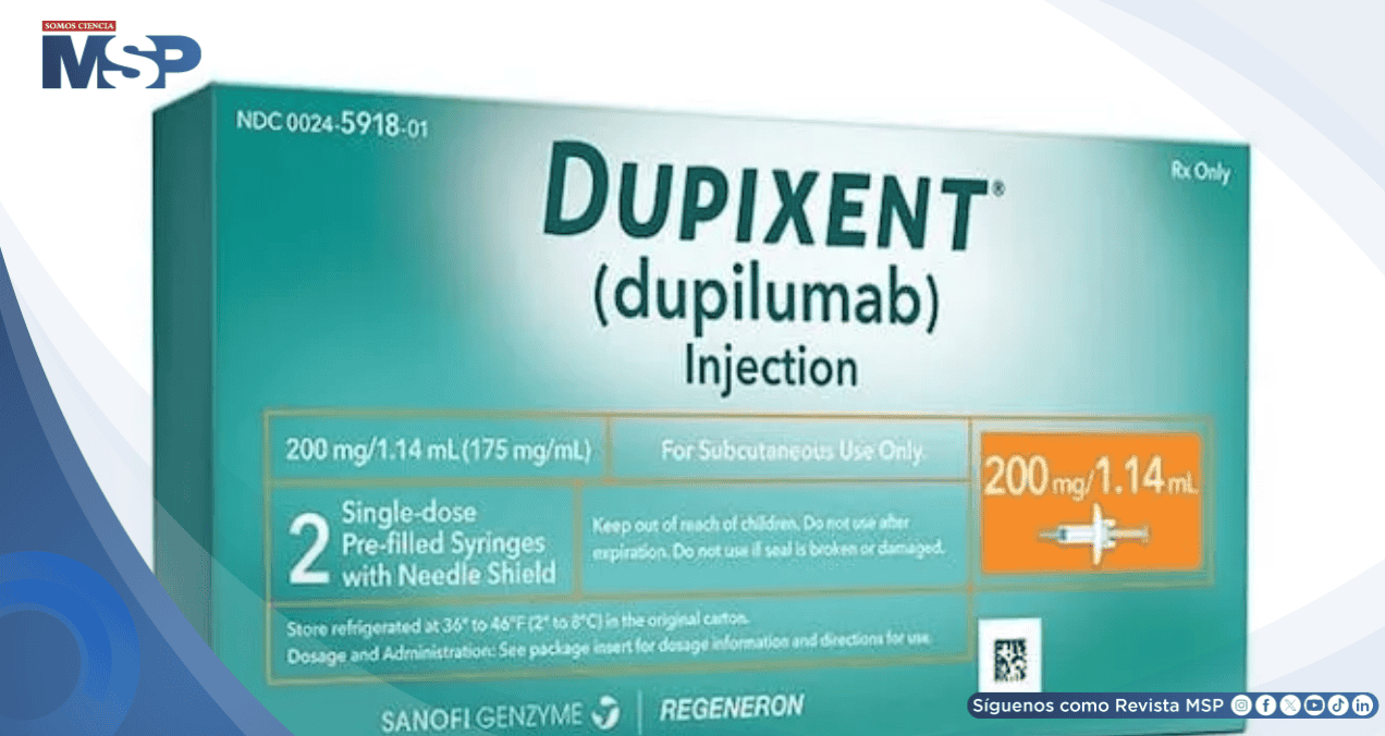 Las indicaciones aprobadas incluyen dermatitis atópica, asma, rinosinusitis crónica con pólipos nasales, esofagitis eosinofílica, prurigo nodular, enfermedad pulmonar obstructiva crónica, urticaria crónica espontánea, penfigoide ampolloso y ahora rinosinusitis fúngica alérgica.