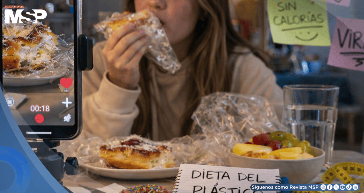 La peligrosa práctica, conocida internacionalmente como 'plastic eating', consiste en masticar alimentos envueltos en film transparente para después escupirlos, engañando al cerebro pero no al organismo.